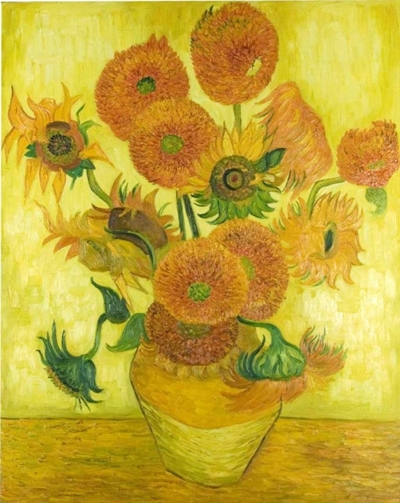 ки зрения классических канонов живописи Винсент Ван Гог не может похвастаться мастерством. Однако за годы усердного труда он выработал личную манеру письма, которая и нашла отражение в его знаменитой картине. Картина «Подсолнухи» целиком поглощает внимание зрителя своими харизматичными и крупными мазками. Визуально ваза выглядит маленькой для огромных и строптивых подсолнухов. Что касается последних, то они будто стремятся проникнуть за рамки холста, исследуя окружающий мир и стремясь к размашистым лучам солнца. Фактура картины привлекает внимание своей рельефностью. Мазки переполнены эмоциями. Создается впечатление, будто художник торопился «излить себя» на полотно, пока его не унесло бурным фонтаном чувственного восторга. При пристальном рассмотрении картины создается иллюзия динамичности подсолнухов, словно они колышутся на стеблях под плотным весом лепестков и соцветий.