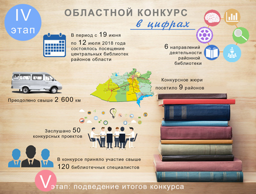 В период с 19 июня по 12 июля т.г. проходил 4-ый этап областного конкурса «Центральная районная библиотека – флагман библиотечной системы района». На данном этапе конкурсная комиссия, состоящая из специалистов Управления культуры и ОУНБ, посещала центральные библиотеки районов и непосредственно ознакамливалась с их деятельностью.